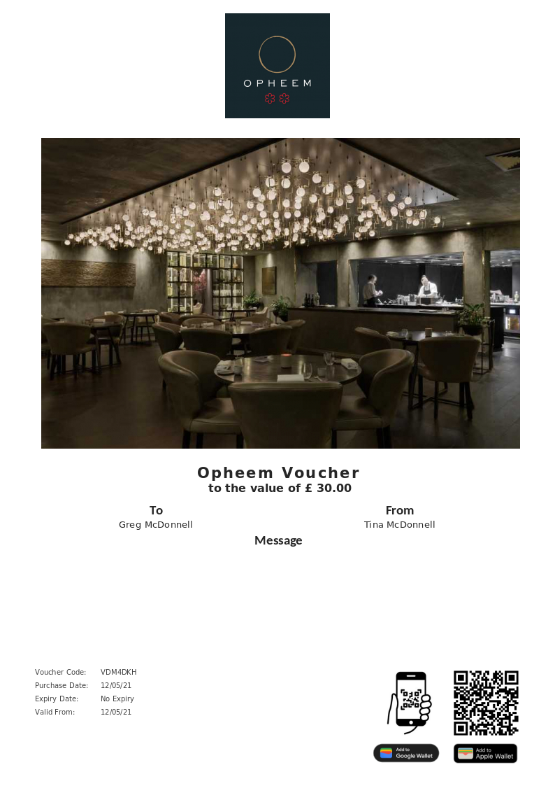 Opheem allows you to purchase instantly printable gift vouchers, special offers and tickets using the Voucher Connect platform.